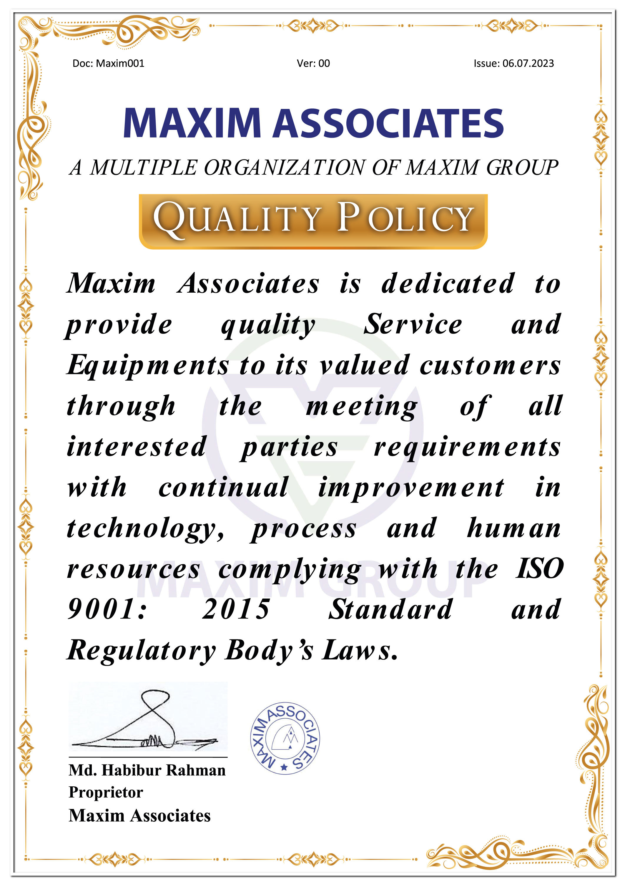 MAXIM ASSOCIATES